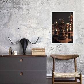 Quadro tabuleiro xadrez- cavalo 45x34cm Moldura: madeira preta Informações do produto tire todas as suas dúvidas no descritivo abaixo: decoração para quarto, sala, cozinha, escritório, área gourmet e muito mais. Chega de paredes vazias. Medidas - cada peça tem 45x34cm a3 . Material do papel - papel fotográfico brilhante de altíssima resolução acabamento - todos os quadros são acompanhados de uma película de acetato para proteção da imagem. - os quadros são embalados de forma segura com plástico bolha com camada dupla de acordo com o tamanho dos quadros. Garantia - garantia de 3 meses. Meu quadro chegou. Como posso fixá-lo Você precisa apenas de um martelo e um prego, pois os quadros já vão acompanhados de penduradores. Esta é a forma mais indicada. Caso prefira, você pode utilizar uma fita dupla face neste caso, sugerimos de alta qualidade para evitar que descole e seu quadro caia . Como posso limpar meu quadro A limpeza é feita como um móvel comum da sua casa. Apenas um pano seco ou espanador são suficientes para tal Homologação Inmetro: CE-BRI/IQB 005923 53892/20-050 Ean: 7892149110084