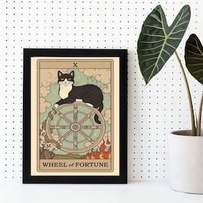 Feito com papel fotográfico brilhante de altíssima resolução, o Quadro Decorativo Carta Tarot Roda Da Fortuna Gato possui um acabamento impecável. Além disso, ele é acompanhado por uma película de acetato para proteger a imagem.