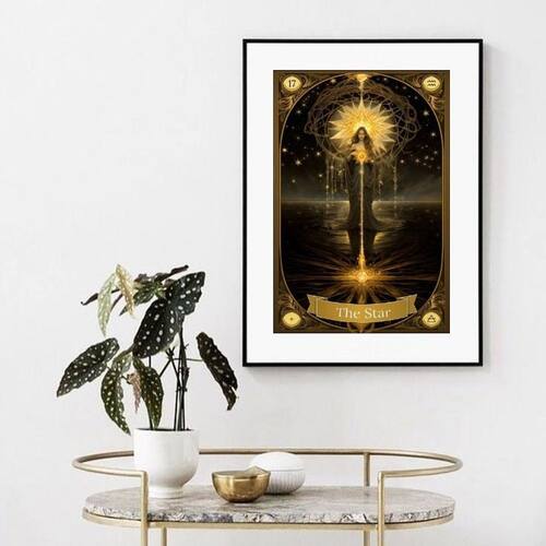 Quadro tarot star vintage - 60x48cm Cor: moldura preta Informações do produto tire todas as suas dúvidas no descritivo abaixo: decoração para quarto, sala, cozinha, escritório, área gourmet e muito mais. Chega de paredes vazias medidas - cada peça tem 60x48cm . Material do papel - papel fotográfico brilhante de altíssima resolução acabamento - todos os quadros são acompanhados de vidro para proteção da imagem. - moldura em madeira maciça na cor preta ou branca conforme produto escolhido e pendurador. - paspatur branco com 7cm de largura - os quadros são embalados de forma segura com plástico bolha com camada dupla de acordo com o tamanho dos quadros. Garantia - garantia de 3 meses. Meu quadro chegou. Como posso fixá-lo Você precisa apenas de um martelo e um prego, pois os quadros já vão acompanhados de penduradores. Esta é a forma mais indicada. Como posso limpar meu quadro A limpeza é feita como um móvel comum da sua casa. Apenas um pano seco ou espanador são suficientes para tal
