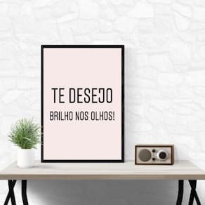 Quadro te desejo brilho nos olhos 33x24cm Cor: moldura branca Informações do produto tire todas as suas dúvidas no descritivo abaixo: decoração para quarto, sala, cozinha, escritório, área gourmet e muito mais. Chega de paredes vazias medidas - cada peça tem 33x24cm a4 . Material do papel - papel fotográfico brilhante de altíssima resolução acabamento - todos os quadros são acompanhados de uma película de acetato para proteção da imagem. - os quadros são embalados de forma segura com plástico bolha com camada dupla de acordo com o tamanho dos quadros. - de 3 meses. Meu quadro chegou. Como posso fixá-lo Você precisa apenas de um martelo e um prego, pois os quadros já vão acompanhados de penduradores. Esta é a forma mais indicada. Caso prefira, você pode utilizar uma fita dupla face neste caso, sugerimos de alta qualidade para evitar que descole e seu quadro caia . Como posso limpar meu quadro A limpeza é feita como um móvel comum da sua casa. Apenas um pano seco ou espanador são suficientes para tal