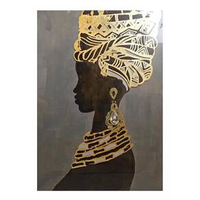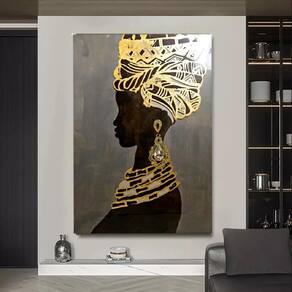 Com um design único e cheio de personalidade, este quadro é capaz de transformar qualquer ambiente. Sua tela com temática africana, pintada à mão com detalhes em dourado, traz um toque de estilo e elegância para a decoração.