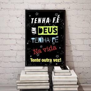 Quadro tenha fé em deus tenha fé na vida 45x34cm - com vidro Moldura: madeira preta Informações do produto tire todas as suas dúvidas no descritivo abaixo: decoração para quarto, sala, cozinha, escritório, área gourmet e muito mais. Chega de paredes vazias medidas - cada peça tem 45x34cm a3 . Material do papel - papel fotográfico brilhante de altíssima resolução acabamento - todos os quadros são acompanhados de vidro para proteção da imagem. - moldura em madeira maciça na cor preta ou branca conforme produto escolhido e pendurador . - os quadros são embalados de forma segura com plástico bolha com camada dupla de acordo com o tamanho dos quadros. Garantia - garantia de 3 meses. Meu quadro chegou. Como posso fixá-lo Você precisa apenas de um martelo e um prego, pois os quadros já vão acompanhados de penduradores. Esta é a forma mais indicada. Como posso limpar meu quadro A limpeza é feita como um móvel comum da sua casa. Apenas um pano seco ou espanador são suficientes para tal Ean: 7896871230072