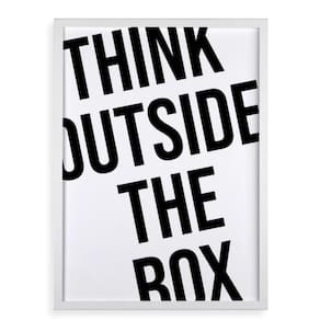 Quadro think outside the box 45x34cm Cor: moldura branca Informações do produto tire todas as suas dúvidas no descritivo abaixo: decoração para quarto, sala, cozinha, escritório, área gourmet e muito mais. Chega de paredes vazias. Medidas - cada peça tem 45x34cm a3 . Material do papel - papel fotográfico brilhante de altíssima resolução acabamento - todos os quadros são acompanhados de uma película de acetato para proteção da imagem. - os quadros são embalados de forma segura com plástico bolha com camada dupla de acordo com o tamanho dos quadros. - de 3 meses. Meu quadro chegou. Como posso fixá-lo Você precisa apenas de um martelo e um prego, pois os quadros já vão acompanhados de penduradores. Esta é a forma mais indicada. Caso prefira, você pode utilizar uma fita dupla face neste caso, sugerimos de alta qualidade para evitar que descole e seu quadro caia . Como posso limpar meu quadro A limpeza é feita como um móvel comum da sua casa. Apenas um pano seco ou espanador são suficientes para tal Marca: Não Informado