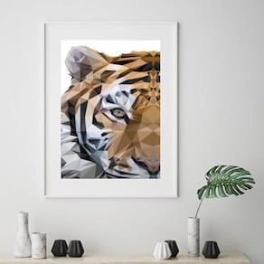 Quadro tigre geométrico - 60x48cm Moldura: madeira branca Informações do produto tire todas as suas dúvidas no descritivo abaixo: decoração para quarto, sala, cozinha, escritório, área gourmet e muito mais. Chega de paredes vazias medidas - cada peça tem 60x48cm . Material do papel - papel fotográfico brilhante de altíssima resolução acabamento - todos os quadros são acompanhados de vidro para proteção da imagem. - moldura em madeira maciça na cor preta ou branca conforme produto escolhido e pendurador. - paspatur branco com 7cm de largura - os quadros são embalados de forma segura com plástico bolha com camada dupla de acordo com o tamanho dos quadros. - de 3 meses. Meu quadro chegou. Como posso fixá-lo Você precisa apenas de um martelo e um prego, pois os quadros já vão acompanhados de penduradores. Esta é a forma mais indicada. Como posso limpar meu quadro A limpeza é feita como um móvel comum da sua casa. Apenas um pano seco ou espanador são suficientes para tal