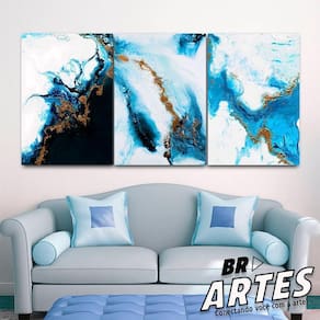 Quadro Trio Abstrato Geométrico Azul -- Br Artes Quadro Trio Abstrato Geométrico Azul -- BR ARTES G (118 x 78) - Qualidade Premium (padrão museu)
