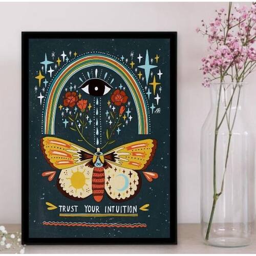 Quadro trust your intuition 24x18cm Moldura: madeira preta Informações do produto Decoração para quarto, sala, cozinha, escritório, área gourmet e muito mais. Chega de paredes vazias Medidas - cada peça tem 24x18cm a5 . Material do papel - papel fotográfico brilhante de altíssima resolução acabamento - todos os quadros são acompanhados de uma película de acetato para proteção da imagem. - os quadros são embalados de forma segura com plástico bolha com camada dupla de acordo com o tamanho dos quadros. - de 3 meses. Meu quadro chegou. Como posso fixá-lo Você precisa apenas de um martelo e um prego, pois os quadros já vão acompanhados de penduradores. Esta é a forma mais indicada. Caso prefira, você pode utilizar uma fita dupla face neste caso, sugerimos de alta qualidade para evitar que descole e seu quadro caia . Como posso limpar meu quadro A limpeza é feita como um móvel comum da sua casa. Apenas um pano seco ou espanador são suficientes para tal. Marca: Não Informado