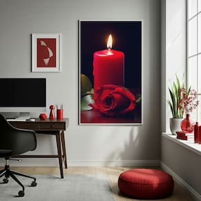 Quadro Umbanda Vela e Rosa Vermelha - 70x50cm - Cor: Moldura Branca