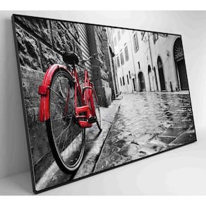 Quadro Urbano Bicicleta Vermelha Em Rua De Pedra Medidas 60x40 Cm Impressão Tecido Canvas