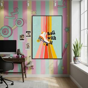 Quadro Vai Levando Com Patins 70x50cm Mold Preta