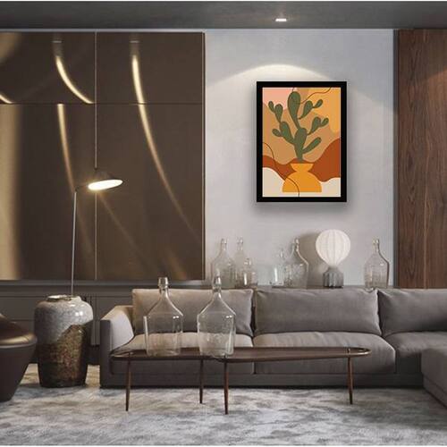 Quadro Vaso de Planta Abstrato 45x34cm - com vidro - Moldura: Madeira branca