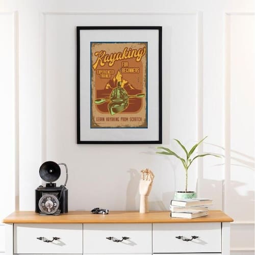 Quadro vintage caiaque - 60x48cm Cor: moldura branca Informações do produto tire todas as suas dúvidas no descritivo abaixo: decoração para quarto, sala, cozinha, escritório, área gourmet e muito mais. Chega de paredes vazias medidas - cada peça tem 60x48cm . Material do papel - papel fotográfico brilhante de altíssima resolução acabamento - todos os quadros são acompanhados de vidro para proteção da imagem. - moldura em madeira maciça na cor preta ou branca conforme produto escolhido e pendurador. - paspatur branco com 7cm de largura - os quadros são embalados de forma segura com plástico bolha com camada dupla de acordo com o tamanho dos quadros. - de 3 meses. Meu quadro chegou. Como posso fixá-lo Você precisa apenas de um martelo e um prego, pois os quadros já vão acompanhados de penduradores. Esta é a forma mais indicada. Como posso limpar meu quadro A limpeza é feita como um móvel comum da sua casa. Apenas um pano seco ou espanador são suficientes para tal Marca: Não Informado