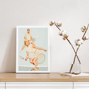 Quadro vintage casal jogando tênis 33x24cm - com vidro Moldura: madeira branca Informações do produto tire todas as suas dúvidas no descritivo abaixo: decoração para quarto, sala, cozinha, escritório, área gourmet e muito mais. Chega de paredes vazias medidas - cada peça tem 33x24cm a4 . Material do papel - papel fotográfico brilhante de altíssima resolução acabamento - todos os quadros são acompanhados de vidro para proteção da imagem. - moldura em madeira maciça na cor preta ou branca conforme produto escolhido e pendurador . - os quadros são embalados de forma segura com plástico bolha com camada dupla de acordo com o tamanho dos quadros. Garantia - garantia de 3 meses. Meu quadro chegou. Como posso fixá-lo Você precisa apenas de um martelo e um prego, pois os quadros já vão acompanhados de penduradores. Esta é a forma mais indicada. Como posso limpar meu quadro A limpeza é feita como um móvel comum da sua casa. Apenas um pano seco ou espanador são suficientes para tal Ean: 7896754499343