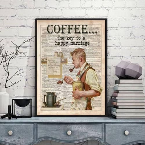 Quadro vintage coffee happy mariage 45x34cm Moldura: madeira preta Informações do produto tire todas as suas dúvidas no descritivo abaixo: decoração para quarto, sala, cozinha, escritório, área gourmet e muito mais. Chega de paredes vazias medidas - cada peça tem 45x34cm a3 . Material do papel - papel fotográfico brilhante de altíssima resolução acabamento - todos os quadros são acompanhados de uma película de acetato para proteção da imagem. - moldura em madeira maciça na cor preta e pendurador móvel que pode ser retirado facilmente caso deseje fixar com fita dupla face. - os quadros são embalados de forma segura com plástico bolha com camada dupla de acordo com o tamanho dos quadros. Ean: 7892091104209