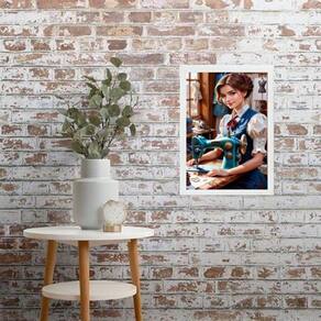 Quadro vintage mulher costurando - costureira 24x18cm - com vidro Moldura: madeira preta Informações do produto tire todas as suas dúvidas no descritivo abaixo: decoração para quarto, sala, cozinha, escritório, área gourmet e muito mais. Chega de paredes vazias medidas - cada peça tem 24x18cm a5 . Material do papel - papel fotográfico brilhante de altíssima resolução acabamento - todos os quadros são acompanhados de vidro para proteção da imagem. - moldura em madeira maciça na cor preta ou branca conforme produto escolhido e pendurador . - os quadros são embalados de forma segura com plástico bolha com camada dupla de acordo com o tamanho dos quadros. Garantia - garantia de 3 meses. Meu quadro chegou. Como posso fixá-lo Você precisa apenas de um martelo e um prego, pois os quadros já vão acompanhados de penduradores. Esta é a forma mais indicada. Como posso limpar meu quadro A limpeza é feita como um móvel comum da sua casa. Apenas um pano seco ou espanador são suficientes para tal