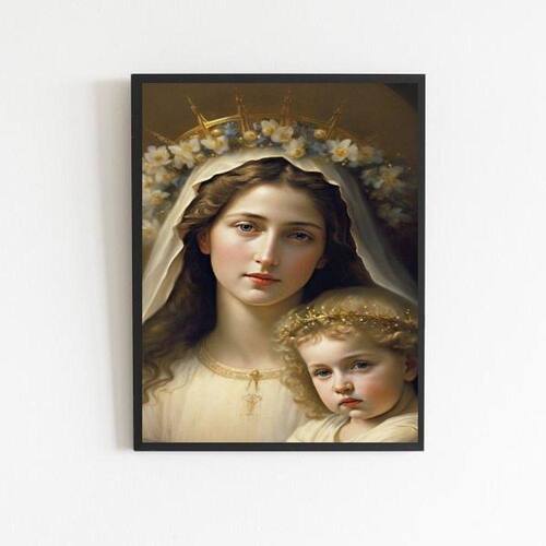 1. Qual o tamanho do quadro? O Quadro Virgem Maria Com Menino Jesus possui 24x18cm A5 .