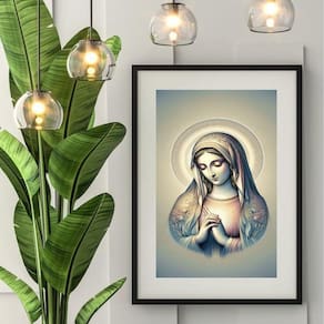 Quadro virgem maria prateada - 60x48cm Moldura: madeira branca Informações do produto tire todas as suas dúvidas no descritivo abaixo: decoração para quarto, sala, cozinha, escritório, área gourmet e muito mais. Chega de paredes vazias medidas - cada peça tem 60x48cm . Material do papel - papel fotográfico brilhante de altíssima resolução acabamento - todos os quadros são acompanhados de vidro para proteção da imagem. - moldura em madeira maciça na cor preta ou branca conforme produto escolhido e pendurador. - paspatur branco com 7cm de largura - os quadros são embalados de forma segura com plástico bolha com camada dupla de acordo com o tamanho dos quadros. Garantia - garantia de 3 meses. Meu quadro chegou. Como posso fixá-lo Você precisa apenas de um martelo e um prego, pois os quadros já vão acompanhados de penduradores. Esta é a forma mais indicada. Como posso limpar meu quadro A limpeza é feita como um móvel comum da sua casa. Apenas um pano seco ou espanador são suficientes para tal