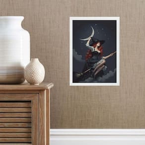 Quadro wicca bruxa com lua 33x24cm - com vidro Moldura: madeira preta Informações do produto tire todas as suas dúvidas no descritivo abaixo: decoração para quarto, sala, cozinha, escritório, área gourmet e muito mais. Chega de paredes vazias medidas - cada peça tem 33x24cm a4 . Material do papel - papel fotográfico brilhante de altíssima resolução acabamento - todos os quadros são acompanhados de vidro para proteção da imagem. - moldura em madeira maciça na cor preta ou branca conforme produto escolhido e pendurador . - os quadros são embalados de forma segura com plástico bolha com camada dupla de acordo com o tamanho dos quadros. Garantia - garantia de 3 meses. Meu quadro chegou. Como posso fixá-lo Você precisa apenas de um martelo e um prego, pois os quadros já vão acompanhados de penduradores. Esta é a forma mais indicada. Como posso limpar meu quadro A limpeza é feita como um móvel comum da sua casa. Apenas um pano seco ou espanador são suficientes para tal