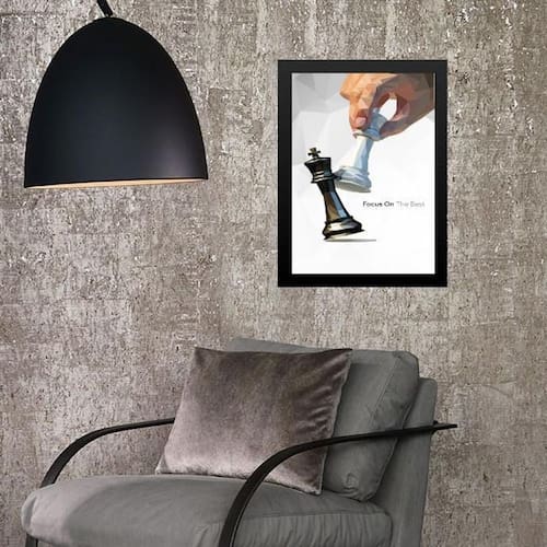 Quadro xadrez- focus on the best 24x18cm Moldura: madeira branca Informações do produto tire todas as suas dúvidas no descritivo abaixo: decoração para quarto, sala, cozinha, escritório, área gourmet e muito mais. Chega de paredes vazias medidas - cada peça tem 24x18cm a5 . Material do papel - papel fotográfico brilhante de altíssima resolução acabamento - todos os quadros são acompanhados de uma película de acetato para proteção da imagem. - os quadros são embalados de forma segura com plástico bolha com camada dupla de acordo com o tamanho dos quadros. - de 3 meses. Meu quadro chegou. Como posso fixá-lo Você precisa apenas de um martelo e um prego, pois os quadros já vão acompanhados de penduradores. Esta é a forma mais indicada. Caso prefira, você pode utilizar uma fita dupla face neste caso, sugerimos de alta qualidade para evitar que descole e seu quadro caia . Como posso limpar meu quadro A limpeza é feita como um móvel comum da sua casa. Apenas um pano seco ou espanador são suficientes para tal Ean: 7895904061355