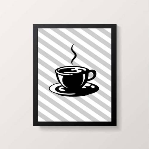 Quadro xícara de café com fundo listrado 45x34cm - com vidro Moldura: madeira preta Informações do produto tire todas as suas dúvidas no descritivo abaixo: decoração para quarto, sala, cozinha, escritório, área gourmet e muito mais. Chega de paredes vazias medidas - cada peça tem 45x34cm a3 . Material do papel - papel fotográfico brilhante de altíssima resolução acabamento - todos os quadros são acompanhados de vidro para proteção da imagem. - moldura em madeira maciça na cor preta e pendurador . - os quadros são embalados de forma segura com plástico bolha com camada dupla de acordo com o tamanho dos quadros. - de 3 meses. Meu quadro chegou. Como posso fixá-lo Você precisa apenas de um martelo e um prego, pois os quadros já vão acompanhados de penduradores. Esta é a forma mais indicada. Como posso limpar meu quadro A limpeza é feita como um móvel comum da sua casa. Apenas um pano seco ou espanador são suficientes para tal
