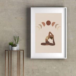 Quadro yoga fases da lua - 60x48cm Moldura: madeira branca Informações do produto tire todas as suas dúvidas no descritivo abaixo: decoração para quarto, sala, cozinha, escritório, área gourmet e muito mais. Chega de paredes vazias medidas - cada peça tem 60x48cm . Material do papel - papel fotográfico brilhante de altíssima resolução acabamento - todos os quadros são acompanhados de vidro para proteção da imagem. - moldura em madeira maciça na cor preta ou branca conforme produto escolhido e pendurador. - paspatur branco com 7cm de largura - os quadros são embalados de forma segura com plástico bolha com camada dupla de acordo com o tamanho dos quadros. Garantia - garantia de 3 meses. Meu quadro chegou. Como posso fixá-lo Você precisa apenas de um martelo e um prego, pois os quadros já vão acompanhados de penduradores. Esta é a forma mais indicada. Como posso limpar meu quadro A limpeza é feita como um móvel comum da sua casa. Apenas um pano seco ou espanador são suficientes para tal