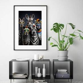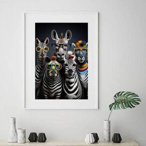 Quadro zebras modernas de óculos - 60x48cm Moldura: madeira preta Informações do produto tire todas as suas dúvidas no descritivo abaixo: decoração para quarto, sala, cozinha, escritório, área gourmet e muito mais. Chega de paredes vazias medidas - cada peça tem 60x48cm . Material do papel - papel fotográfico brilhante de altíssima resolução acabamento - todos os quadros são acompanhados de vidro para proteção da imagem. - moldura em madeira maciça na cor preta ou branca conforme produto escolhido e pendurador. - paspatur branco com 7cm de largura - os quadros são embalados de forma segura com plástico bolha com camada dupla de acordo com o tamanho dos quadros. - de 3 meses. Meu quadro chegou. Como posso fixá-lo Você precisa apenas de um martelo e um prego, pois os quadros já vão acompanhados de penduradores. Esta é a forma mais indicada. Como posso limpar meu quadro A limpeza é feita como um móvel comum da sua casa. Apenas um pano seco ou espanador são suficientes para tal Marca: Não Informado