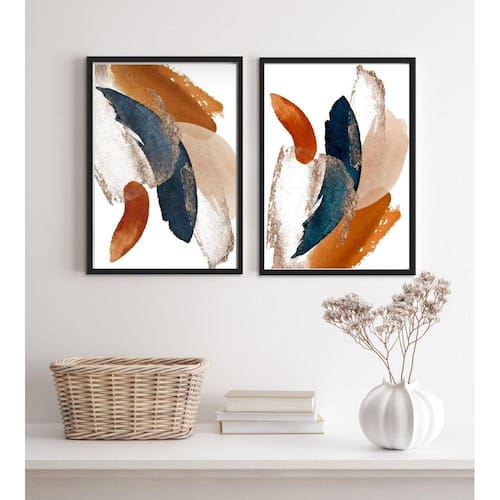 Conjunto 2 Quadros Abstratos Arte Azul Terracota 45X34Cm