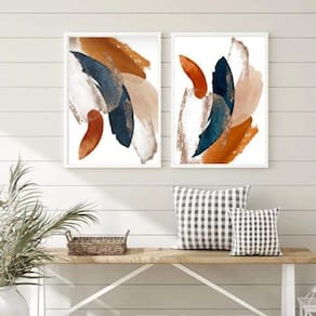 Garanta já o seu Conjunto 2 Quadros Abstratos Arte Azul Terracota e transforme a decoração do seu ambiente! Ean: 7892584461918