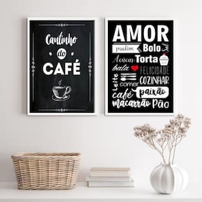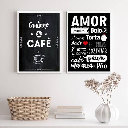 O Kit 2 Quadros Cantinho Do Café Amor Cozinha 24X18Cm é perfeito para dar um toque especial à decoração do seu quarto, sala, cozinha, escritório, área gourmet e muito mais. Chega de paredes vazias!