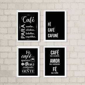 Kit 4 Quadros Cantinho Do Café Com Fé 33X24Cm - Com Vidro