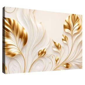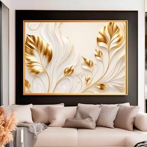 Quadros Decorativo Flores Douradas no Branco Borda Infinita - 84x54cm -