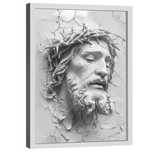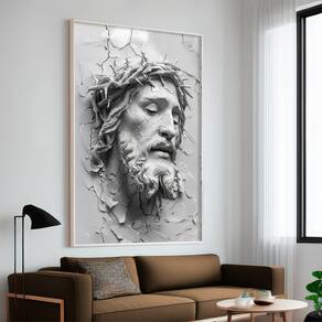 Quadros Decorativo Jesus Face 3D Moldura Branca e Vidro - 84x54cm -