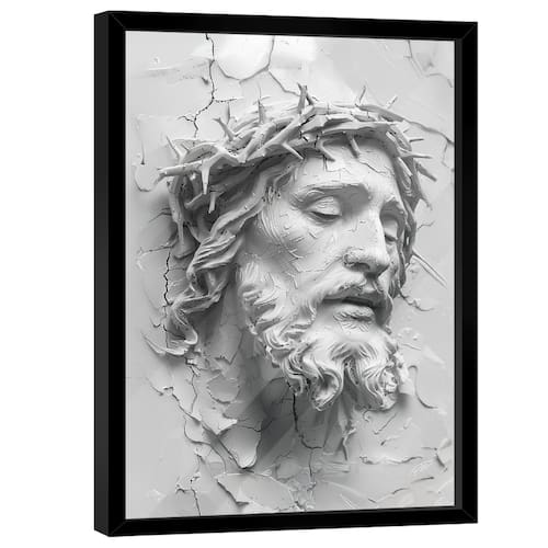 Quadros Decorativo Jesus Face 3D Moldura Preta e Vidro - 84x54cm -