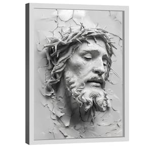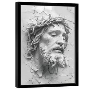 Quadros Decorativo Jesus Face 3D Moldura Branca - 84x54cm -