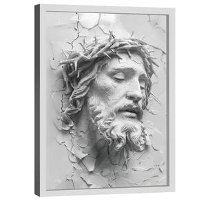 Quadros Decorativo Jesus Face 3D Moldura Branca e Vidro - 180x105cm -