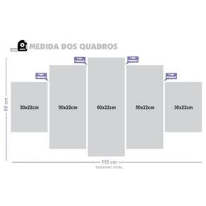 Kit 5 quadros decorativos mosaicos Material: Quadros produzido em mdf - dimensões: Tamanho total do quadro montado na parede: 115cm x 60cm - 1 peça central com 60x22cm - 2 peças intermediárias: 22x50cm - 2 peças laterais: 22x30cm. - deixar espaçamento entre as peças na hora da instalação = 1 cm -informações técnicas: O quadro não precisa de moldura, estão pronto para pendurar na parede. São feitos em adesivos fosco e impressos em alta qualidade. Aplicado em mdf com espessura de 3mm. - instalação: Não é necessário furar a parede para instalação, pois, enviamos fitas 3m com grande poder adesivo para facilitar a instalação. É necessário na hora da instalação posicionar o quadro em 1cm de largura entre eles para melhor qualidade de visualização. Limpe o local que vai ser instalado o quadro com um pano úmido, após secar o local, visualize como Vai ser o alinhamento, e retire a proteção da fita dupla face parte verde da fita e pressione No lugar desejado para a fixação. - limpeza após instalação: A limpeza pode ser realizada apenas com um pano seco macio, se desejar pode ser úmido porém sem conter álcool ou produtos químicos. -demais dúvidas estamos à disposição, basta nos chamar no campo mensagens que estamos aqui para melhor atendê-los : Boas compras Ean: 1001001059645