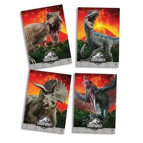 Conteúdo: 4 Quadros Decorativos do Jurassic World em Papel Cartão.