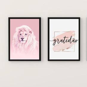 Com o Kit 2 Quadros Decorativos Leão Rosa Gratidão, você transforma suas paredes vazias em verdadeiras obras de arte Ean: 7896198370048