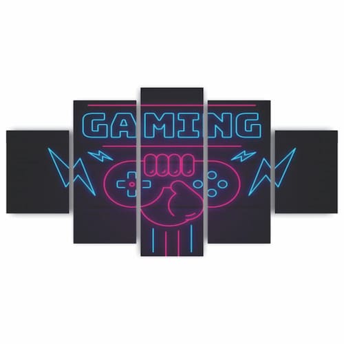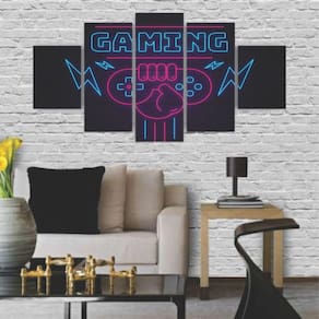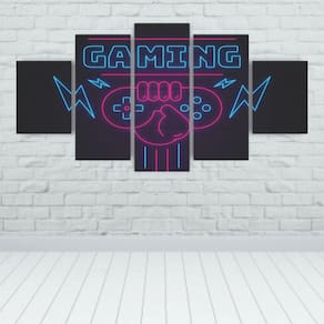 Quadros Decorativos Mdf Gaming Hora Jogo Gamer Sala Quarto Kit 5 quadros decorativos mosaicos Material: Quadros produzido em mdf - dimensões: Tamanho total do quadro montado na parede: 115cm x 60cm - 1 peça central com 60x22cm - 2 peças intermediárias: 22x50cm - 2 peças laterais: 22x30cm. - deixar espaçamento entre as peças na hora da instalação = 1 cm -informações técnicas: O quadro não precisa de moldura, estão pronto para pendurar na parede. São feitos em adesivos fosco e impressos em alta qualidade. Aplicado em mdf com espessura de 3mm. - instalação: Não é necessário furar a parede para instalação, pois, enviamos fitas 3m com grande poder adesivo para facilitar a instalação. É necessário na hora da instalação posicionar o quadro em 1cm de largura entre eles para melhor qualidade de visualização. Limpe o local que vai ser instalado o quadro com um pano úmido, após secar o local, visualize como Vai ser o alinhamento, e retire a proteção da fita dupla face parte verde da fita e pressione No lugar desejado para a fixação. - limpeza após instalação: A limpeza pode ser realizada apenas com um pano seco macio, se desejar pode ser úmido porém sem conter álcool ou produtos químicos. -demais dúvidas estamos à disposição, basta nos chamar no campo mensagens que estamos aqui para melhor atendê-los : Boas compras