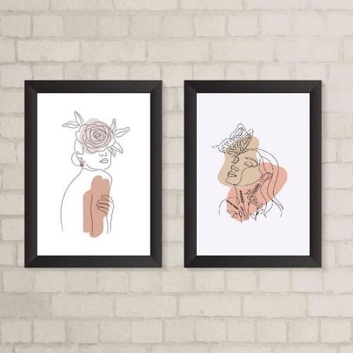 Kit 2 Quadros Decorativos Mulheres One Line 45X34Cm