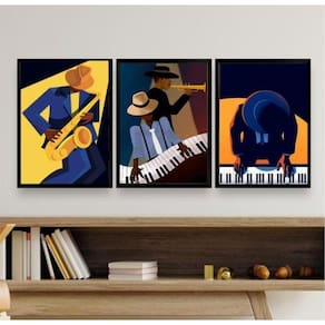 Kit 3 Quadros Decorativos Músicos Piano E Saxofone 45X34Cm - Com Vidro