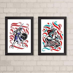 O Kit 2 Quadros Decorativos Ogum e São Jorge é perfeito para decorar qualquer ambiente da sua casa, seja o quarto, sala, cozinha, escritório, área gourmet e muito mais. Com medidas de 45x34cm A3 , cada peça possui um design único e exclusivo que trará personalidade e estilo para o seu espaço.