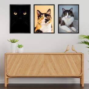 Quadros decorativos para sala 60x40cm gatos Decore sua sala, quarto, cozinha ou presenteie seu amigo com nossos quadros decorativos, são tendência e uma excelente ideia para decorar ambientes de forma econômica e bonita, elas são leves e extremamente fáceis de instalar além de servir para a decoração de qualquer ambiente