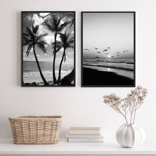 Kit 2 Quadros Decorativos Praia Preto e Branco 24x18cm