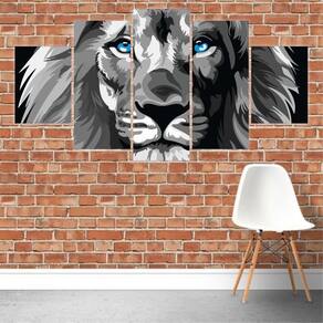 Quadros Decorativos Sala Leão De Judá Cinza - Olho Azul Kit 5 quadros decorativos mosaicos Material: Quadros produzido em mdf - dimensões: Tamanho total do quadro montado na parede: 115cm x 60cm - 1 peça central com 60x22cm - 2 peças intermediárias: 22x50cm - 2 peças laterais: 22x30cm. - deixar espaçamento entre as peças na hora da instalação = 1 cm -informações técnicas: O quadro não precisa de moldura, estão pronto para pendurar na parede. São feitos em adesivos fosco e impressos em alta qualidade. Aplicado em mdf com espessura de 3mm. - instalação: Não é necessário furar a parede para instalação, pois, enviamos fitas 3m com grande poder adesivo para facilitar a instalação. É necessário na hora da instalação posicionar o quadro em 1cm de largura entre eles para melhor qualidade de visualização. Limpe o local que vai ser instalado o quadro com um pano úmido, após secar o local, visualize como Vai ser o alinhamento, e retire a proteção da fita dupla face parte verde da fita e pressione No lugar desejado para a fixação. - limpeza após instalação: A limpeza pode ser realizada apenas com um pano seco macio, se desejar pode ser úmido porém sem conter álcool ou produtos químicos. Marca: Não Informado Ean: 1001001060290