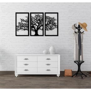 Quadros Decorativos Sala Quarto Árvore Da Vida 3 Peças 85X55