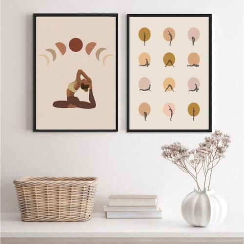 O Kit 2 Quadros Decorativos Yoga- Posições 24X18Cm é perfeito para quem deseja decorar ambientes como quarto, sala, cozinha, escritório, área gourmet e muito mais. Com medidas de 24x18cm A5 , cada peça conta com uma moldura de madeira preta, garantindo um visual elegante e moderno.