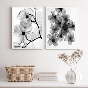 O Kit 2 Quadros Sala Florais Transparentes 24X18Cm - Com Vidro é perfeito para decorar diversos ambientes da sua casa, como sala, quarto, cozinha, escritório, área gourmet e muito mais. Com medidas de 24x18cm A5 , cada peça é feita em papel fotográfico brilhante de altíssima resolução, garantindo uma imagem nítida e de qualidade.