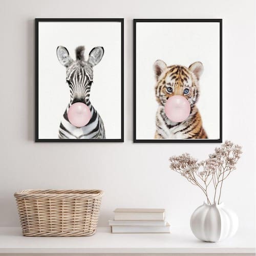 O Kit 2 Quadros Girafa Tigre Bubble Gum é uma ótima opção de presente ou para decorar o seu próprio ambiente. Com garantia de 3 meses, você terá a certeza de adquirir um produto de qualidade. Não perca essa oportunidade e adquira já o seu! Ean: 7893666397040