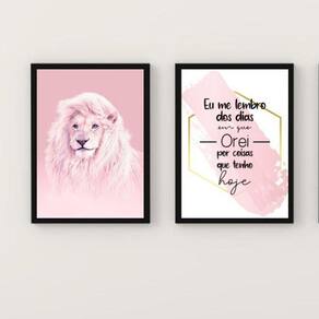 Kit 2 Quadros Leão Rosa Dias Em Que Orei 45X34Cm