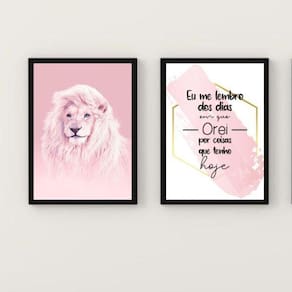 O Kit 2 Quadros Leão Rosa Dias Em Que Orei é perfeito para decorar diversos ambientes, como quarto, sala, cozinha, escritório, área gourmet e muito mais. Chega de paredes vazias!